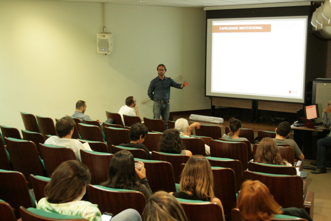 O momento de nivelamento e compartilhamento dos conhecimentos da equipe foi concluído com a apresentação do Diretor de Regulação Metropolitana da Agência Metropolitana, Mateus Nunes, que chamou a atenção para a necessidade do processo orientar a elaboração de leis claras e objetivas, que facilitem a sua aplicação após aprovadas; destacou a importância em se incentivar a criação e o fortalecimento dos meios para uma gestão democrática do território municipal e para a formação de sistemas de acompanhamento e controle. Ressaltou ainda que a Lei do Plano Diretor deve considerar ações afirmativas – incentivos às boas práticas de uso e ocupação do solo que revertam em benefícios para o município e o maior conjunto de seus cidadãos.